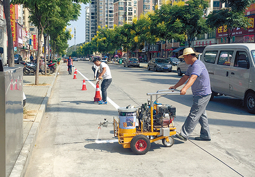 9月23日,市市政設(shè)施管理處工作人員在臥虎路施劃停車位,規(guī)范各類車輛有序停放。?